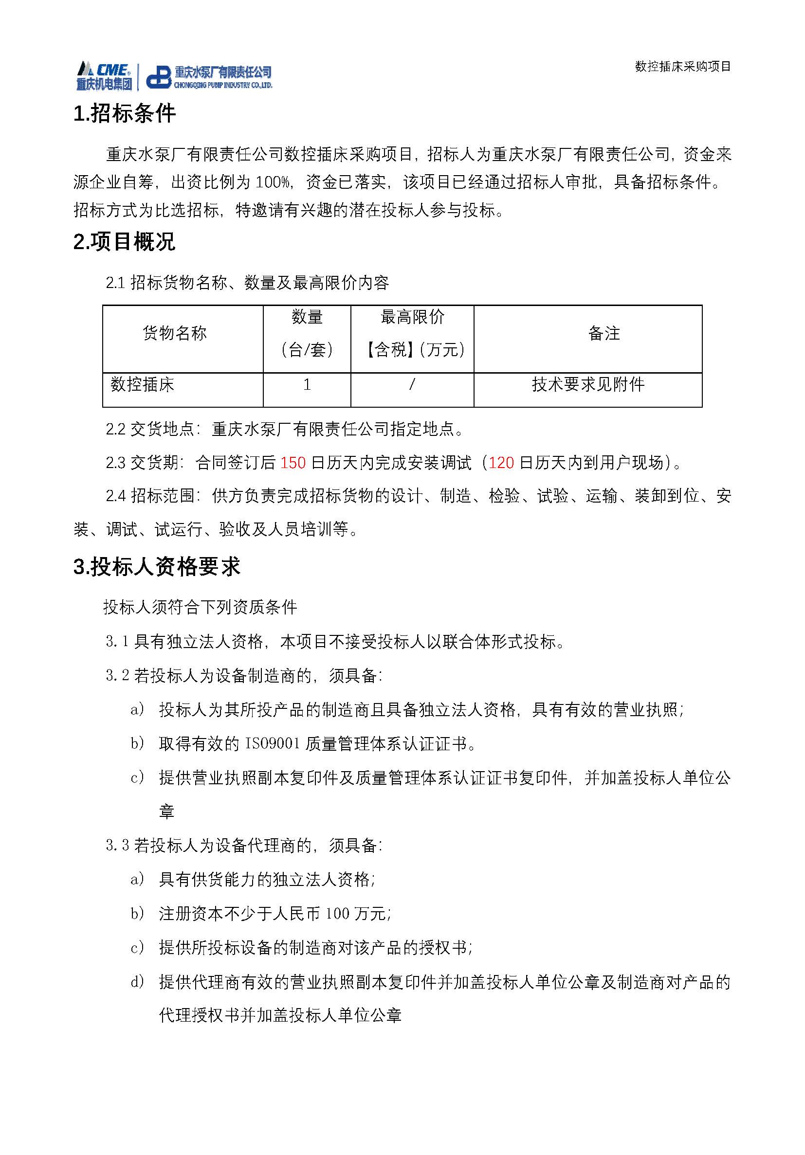 電火花數(shù)控線切割機(jī)采購 招標(biāo)公告