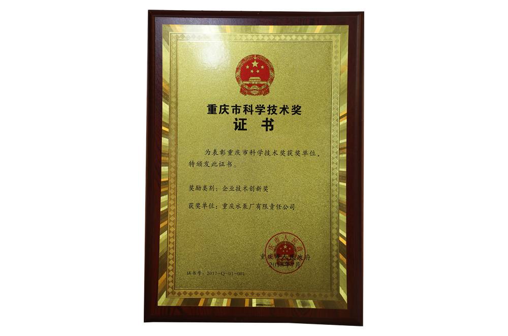 重慶市科學(xué)技術(shù)獎(jiǎng)證書