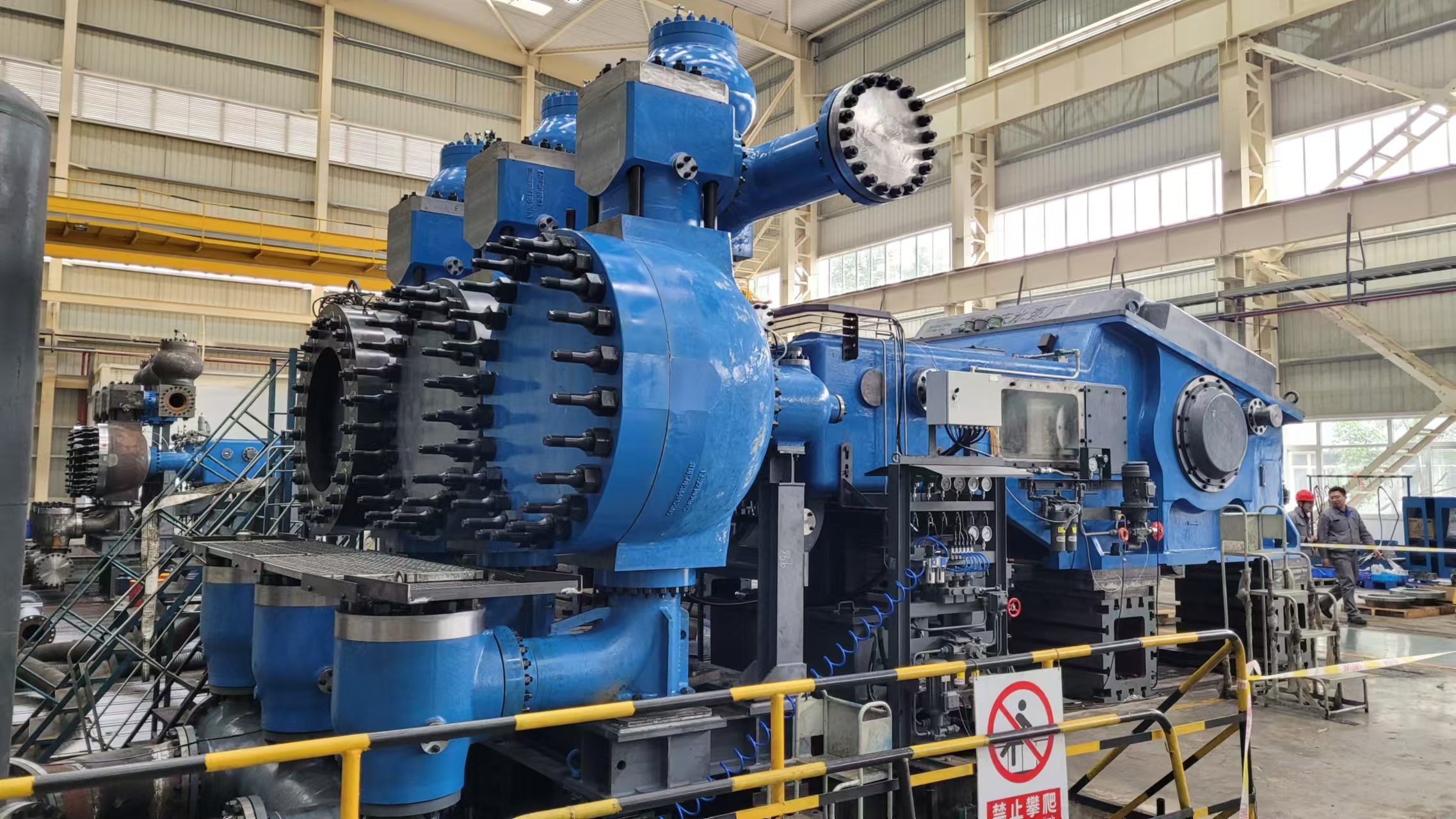 據悉,完成重點合同交付的3D150M750/9.5液壓隔膜泵,是重泵公司依托重慶市技術創新與應用發展專項重點項目開發出的第五代智能控制液壓隔膜泵產品。主要應用于無人值守的高壓、大流量固液兩相流輸送和遠距離管道流體輸送,產品的主要技術性能指標達到國際同類先進水平。其最大輸送能力750m3/h、最高輸送壓力9.5MPa,具有容積效率高達92%,排出流量壓力脈動低至±0.5%,補排油動作20毫秒內響應及防腔室內固相沉降等諸多技術優點,同時具備遠程運維監控、故障預知提醒等智能化功能。