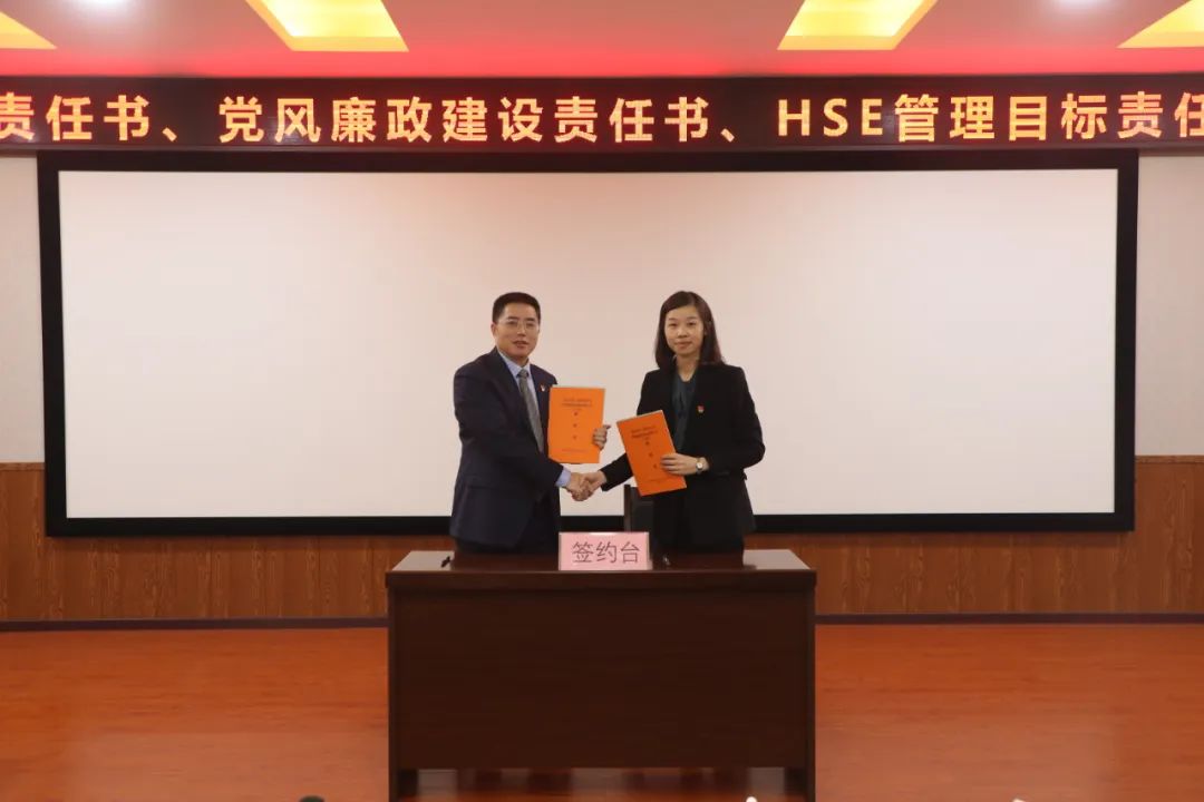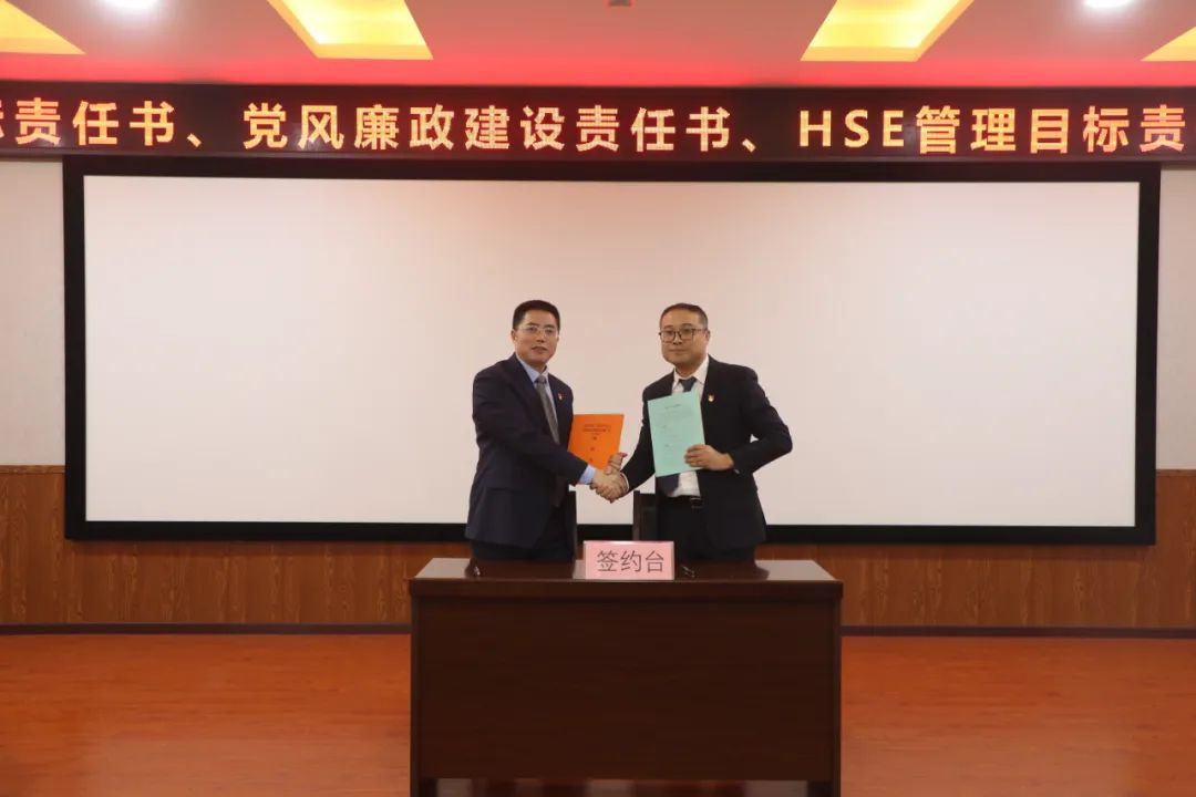 分管領導與中層干部簽訂《2023年目標責任書》《2023年黨風廉政建設責任書》和《HSE管理目標責任書》