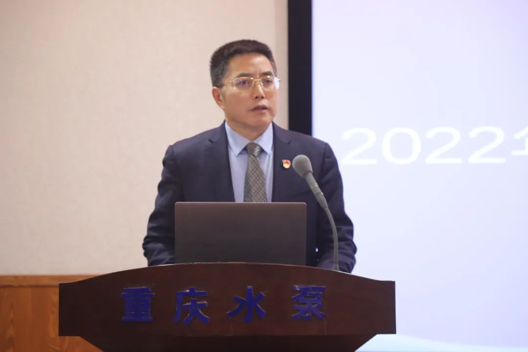 公司黨委副書記、紀委書記、工會主席李衛作了《深學黨的二十大精神,全面從嚴治黨,奮力書寫重泵公司高質量發展新篇章》的黨委工作報告,副總經理潘志敏作了市場和質量工作報告,副總經理何智奎作了生產運行報告,財務副總監劉佳玲作了財務工作報告,總工程師馬文生作了技術創新工作報告,副總工程師冉宏民、白小榜也分別就分管工作作了專題報告,黨委副書記、總經理張波作了講話。