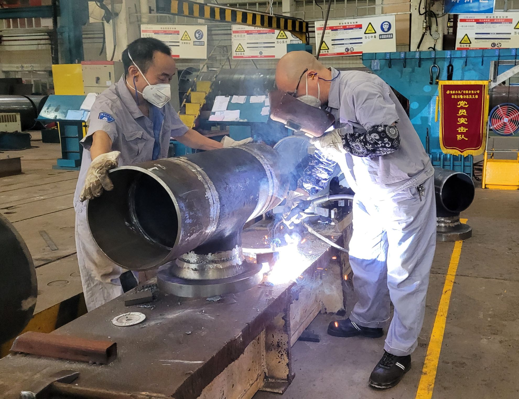 容器車間奮力拼搏,多個在手任務均提前完成焊接、打磨工序,國慶假期至今共完成總裝管路焊接43套,焊接核電外殼體2臺,5臺高壓罐進入退火完成后進行捆扎工序。