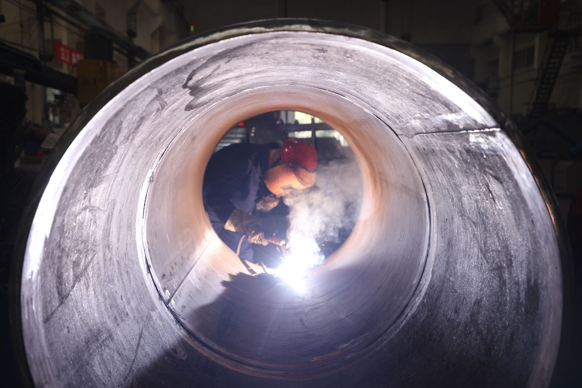 容器車(chē)間內(nèi)焊接區(qū)域的師傅們身著厚重的裝備細(xì)致地打磨著工件,盡管熱浪不斷地涌向車(chē)間,汗水浸濕了黃順兵的衣衫,工作服濕了又干,干了又濕,但師傅們依舊聚精會(huì)神地站在生產(chǎn)線上,目光里滿是認(rèn)真專(zhuān)注。